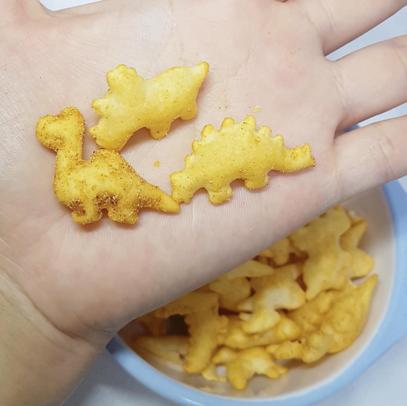 공룡 좋아하는 아이에게 주면 정말 좋아할 과자랍니다. 짭조름해서 어른이 먹기에도 맛있어요.